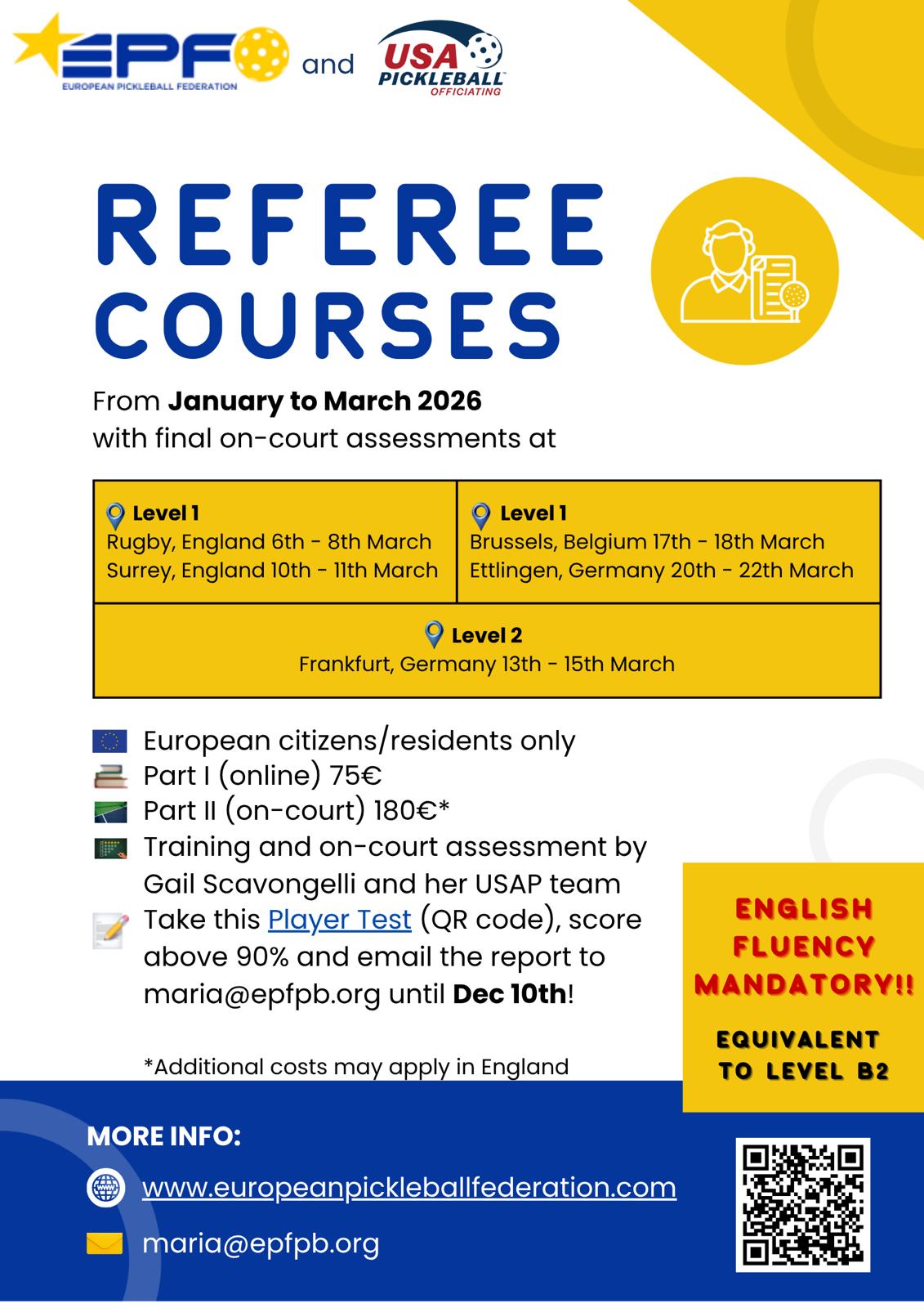 Die European Pickleball Federation orientiert sich ausschließlich an den Schiedsrichter-Richtlinien und Best Practices von USA Pickleball, um einen einheitlichen globalen Standard für Pickleball-Schiedsrichter:innen zu etablieren.